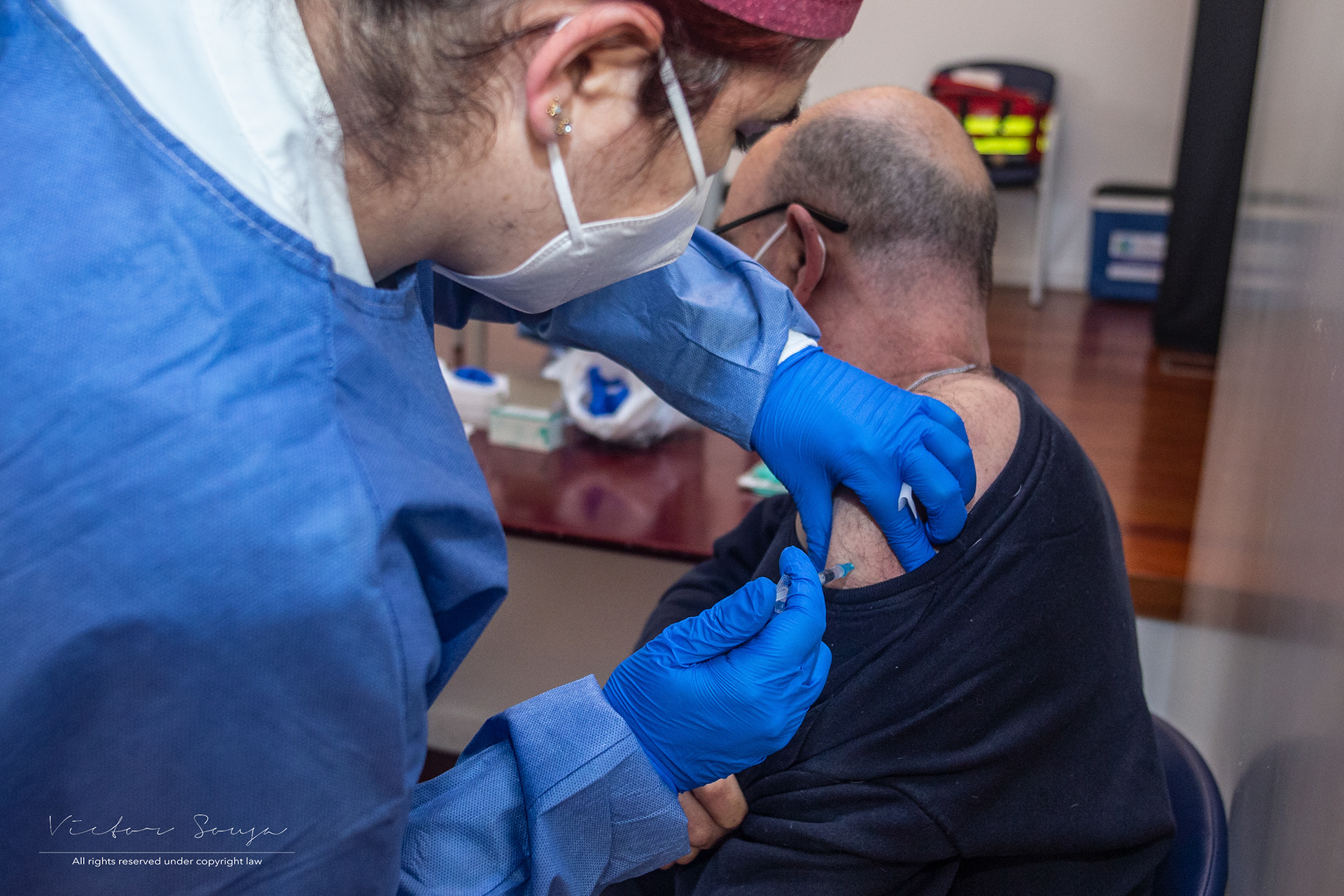 Reportagem fotográfica de 1 dia de vacinação contra a COVID-19.